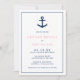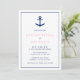 Nautical gender reveal invitations with a simple and modern design featuring a navy blue anchor along with your event details inside of a border, over a white background. The title "Gender Reveal", babys name and the backside are in pink. These elegant invites are perfect for a summer coastal themed celebration by the beach.