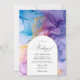 This beautiful wedding invitation features a stunning blend of pink, blue, and gold alcohol ink, creating an elegant and modern look. The flowing design adds a touch of artistic sophistication, perfect for couples who want a unique and stylish invitation. With its luxurious colours and abstract pattern, this invitation sets the perfect tone for a chic and trendy wedding celebration.