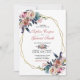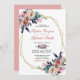 Elegant Pink Blue Floral | Gold Frame Wedding Invitation