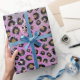 Elegant Pink Blue Gold Glitter Black Leopard Print Wrapping Paper