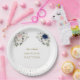 Elegant Pink Blue White Flowers Twins Baptism Paper Plate