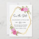 Elegant Pink Blush Floral Gold Geometric Save the Date Card.