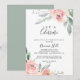 This elegant pink blush floral let's celebrate party invitation is perfect for a modern engagement party, bachelorette party, retirement, graduation, wedding after party or any event or party. The design features hand-drawn pink blush roses and peonies with green and grey leaves, inspiring natural beauty.