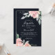 This elegant pink blush floral Spanish bridal shower invitation is perfect for a simple wedding shower. The design features hand-drawn pink blush roses and peonies with green and grey leaves in a dark blue background, inspiring natural beauty.