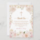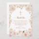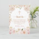 Elegant pink boho floral baptism thank you card. A modern watercolor pink boho floral frame with a cross. Celebrate this joyous occasion with our personalised thank you card that will set the tone for a memorable and meaningful gathering.