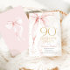 Elegant Pink Bow 90th Birthday Invitation