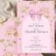 Elegant Pink Bow Girly Floral Baby Shower Invitation