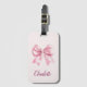 "Travel in style with our Elegant Pink Bow Personalised Name Luggage Tag. Featuring a soft blush pink design with a delicate satin-style bow, this luggage tag is custom-made with your name or initials in a graceful script font, making it easy to spot your bag at a glance. Whether you're heading on a vacation, business trip, or giving a thoughtful gift, this personalised accessory combines beauty and practicality for every journey."