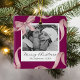 Elegant christmas holiday ornaments featuring a stunning wine background, with a photo centrepiece adorned by beautiful pink watercolor ribbon and bow. Complete with your family name, the year and the seasons greetings "merry christmas".