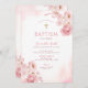 Elegant Blush Pink Floral Girl Christening Baptism Invitation