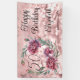 Elegant pink, mauve and burgundy carnations floral design "50th Birthday Party" design featuring a floral open-ended wreath of white-frosted carnations.