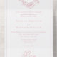 ALSO AVAILABLE WITH OR WITHOUT DINNER CHOICES. Elevate your special day with our elegant, vintage Baroque-style wedding invitation, a masterpiece of timeless elegance. Featuring a delicate French dusty pink chinoiserie crest with delicate line art ribbons, flowers, birds and filigree on a pristine white background, this design exudes classic charm and sophistication. Its simplicity highlights its refined details, creating a design as graceful as your love story. Perfect for those who cherish tradition and elegance. Created by Simply Farmhouse Press.
