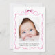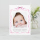 Elegant Pink Coquette Bow Photo Girl Birth Announcement
