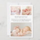 Elegant birth announcement to introduce your baby girl to family and friends featuring her photo in a pink watercolor frame composed of delicate ribbons and a coquette bow, and her name and birth stats in classic serif typography. On the back, add 3 additional photos and your personalised message.