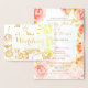 Initials on Back Elegant Pink, Coral and Gold Foil Rose Wedding Foil Card