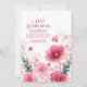 Invite your guests with the fresh, romantic charm of this elegant wedding invitation. The design features a stunning, painterly watercolor arrangement blooming across the bottom edge against a clean white background. Vibrant pink cosmos flowers, in shades ranging from soft blush to deep magenta, take centre stage, accented by airy clusters of delicate pink baby's breath (gypsophila). Sprigs of dusty sage-green eucalyptus leaves are thoughtfully placed, adding a touch of modern greenery and natural elegance. This beautiful botanical border creates a light, joyful, and contemporary feel, perfect for a spring or summer celebration. Ideal for spring or summer weddings, this invitation design is also perfect for bridal showers, garden parties, milestone birthdays, baby showers, or any event calling for a touch of fresh floral beauty. This versatile design can also be adapted for sophisticated corporate events, seasonal promotions, or elegant announcements requiring a modern, romantic touch.