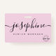 Keywords: Elegant Pink Name Badge, Custom Business Logo, Script Name, Chic and Stylish, Professional Look, Modern Design, Personalised Branding, Sophisticated Font, Vibrant Pink Colour, Eye-Catching, Professional Image, Cohesive Brand Identity, Legible Script Font, Practical Tool, Networking, Positive First Impression, Staff Name Badges, Unified Look, Professional Connections.