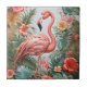 Elegant Pink Flamingo Bird and Tropical Flowers Ceramic Tile