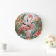 Elegant Pink Flamingo Bird and Tropical Flowers Large Clock