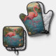 Elegant pink flamingo tropical paradise lagoon oven mitt & pot holder set
