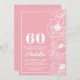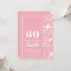 Introducing a chic and elegant 60th birthday party invitation, perfect for celebrating sixty years old in style. The design features a happy light pink background, almost like a darker blush pink, with delicate anemone flower line art running down the right side. While these are anemone flowers, they can pull off a fairly generic floral look. A simple frame around the edge adds an extra detail to the overall design. The fonts are a mix of elegant script typography, bold serif, and simple modern styles, with a large "60" prominently displayed at the top, followed by the party details below. On the back, the design continues with the same light pink background and a single white flower outline, adding a subtle and sophisticated touch. This invitation is perfect for a sixtieth birthday celebration. The background colour, fonts, and even the flowers can all be customised to match your style. Elegant Blush Pink Floral 60th Birthday Party Invitation Sixty Celebration Flowers Script Typography