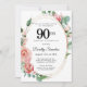 Elegant Pink Floral 90th Birthday Party Invitation