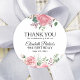 Elegant pink floral 90th birthday thank you classic round sticker