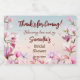 Celebrate the bride-to-be with these charming personalised mini sparkling wine bottle labels, perfect for adding a touch of elegance to your bridal shower favours. Featuring a soft pink floral design with delicate magnolia blossoms and butterflies, the label reads "Thanks for Coming! Showering love and joy" alongside the customisable bride's name and event date.