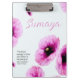 If you appreciate the beauty of flowers and crave an organised life, SumayaCDesignArtworks has got you covered. Our Elegant Pink Floral Clipboard, featuring an elegant design, is more than just a tool; it's a canvas for your dreams and ambitions. Its joyful pink colour and delicate floral artwork will brighten your day and inspire you to achieve your objectives. Furthermore, with its CUSTOMIZATION options (Name - Quote to keep / change, or delete), you can truly make it your own.