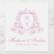 Elegant Pink Floral Crest Monogram Wedding Wine Label