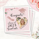 Create elegant pink floral graduation napkins for the class of 2025, personalised with a heart shape photo, graduate's first and last name, and year of the event. This girly design also features a Congrats! saying decorated with light pink rose flowers and illustrations of the graduate's cap and diploma. Upload the graduate's photo, type names and type a year if other than 2025 using the template before ordering.