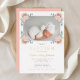 Personalised Elegant Pink Floral Girl Photo Baptism Gold Foil Invitation.
