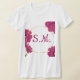 A stylish floral t-shirt featuring vibrant pink flowers and a gold circular accent. Comfortable, elegant, and perfect for everyday wear.