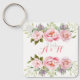 Elegant Pink Floral Monogram 25th Wedding Gift Key Ring