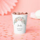 Add a touch of elegance to your drink station with these beautiful disposable paper cups. The design features a delicate watercolor arch of blush pink and cream roses, accented by soft green eucalyptus leaves. Customise the cup with the name and date of the birthday celebration in a sophisticated script font. These customisable cups are perfect for serving hot or cold beverages at a 30th, 40th, 50th, or any milestone birthday, bridal shower, or sophisticated event, offering a charming, cohesive detail to your party setting.