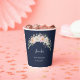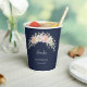 Add a touch of elegance to your drink station with these beautiful disposable paper cups. The design features a delicate watercolor arch of blush pink and cream roses, accented by soft green eucalyptus leaves. Customise the cup with the name and date of the birthday celebration in a sophisticated script font. These customisable cups are perfect for serving hot or cold beverages at a 30th, 40th, 50th, or any milestone birthday, bridal shower, or sophisticated event, offering a charming, cohesive detail to your party setting.