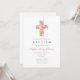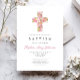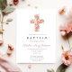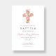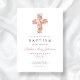 Elegant Pink Floral Religious Cross Baptism Invitation