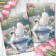Elegant floral swan and silver tiara quinceañera invitations. An elegant white swan floats gracefully on a lake surrounded by pink flowers, carrying a beautiful quinceañera silver tiara in its plumage. The tiara features a stunning white pearls. Bright white butterflies swirl around. This invitation evokes a dreamy, romantic, and fairytale-like atmosphere, perfect for a quinceañera celebration.