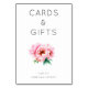 This wedding tabletop sign features a minimalist and elegant design with soft pink peonies at the centre, accented by green leaves. The clean sans-serif typography highlights "CARDS & GIFTS" at the top and "thank you" below the floral illustration, creating a serene and harmonious aesthetic. With its modern minimalism and subtle romantic undertones, this sign is perfect for expressing gratitude in a refined manner, making it an ideal addition to any wedding celebration.