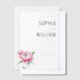 This elegant wedding invitation features a clean, minimalist layout with ample white space that creates a sophisticated atmosphere. The design includes soft pink peonies illustrated in a watercolor style on the left side, adding a delicate touch to the composition. A mix of serif and script fonts is used for the text, providing a balance between formality and personalisation while maintaining readability. The overall mood is one of elegance and warmth, making it perfect for formal weddings. Customisable elements allow you to personalise the details effortlessly.
