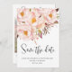 This beautiful blush pink floral wedding announcement features an elegant watercolor bouquet with a modern script "Save the Date." Back features your favourite photo and upcoming wedding details. Send your joyous news to family and friends with this stylish save the date from Cherry Lane Designs!