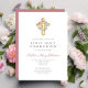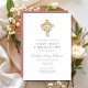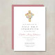 Elegant Pink Floral Wreath Cross First Communion Invitation