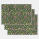 Elegant Pink Flower Pattern on Dark Background Wrapping Paper Sheet