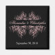 Pink flower swirls on black background. Elegant, fully customisable save the date magnet.