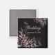 Pink flower swirls on black background. Elegant, fully customisable save the date magnet.