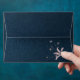 elegant pink flowers on navy blue wedding envelope