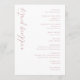 This wedding program features a minimalist and elegant design with a soft pink colour palette, creating a warm and inviting atmosphere. The layout is clean and well-organised, showcasing a mix of cursive and serif fonts that add sophistication to the overall look. Geometric line art accents frame the text asymmetrically, enhancing the modern aesthetic without overwhelming the central content. Perfect for couples seeking a contemporary yet timeless style, this program captures the essence of their special day in Franklin, TN, on August 29, 2026.