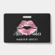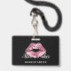 Elegant Pink Glitter Kiss Makeup Artist ID Badge