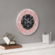 This ultra glamorous and girly wall clock features an elegant, sparkly pink and black design. The inside portion features a black tufted pattern accented with diamonds. The portion with the numbers features a soft pink faux glitter background. A pearlescent style pink border wraps around the clock.