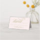 Elegant folded style escort place card in pastel ballet pink (background colour can be customised) and champagne gold colour scheme. Features calligraphy script writing and scroll design accent.